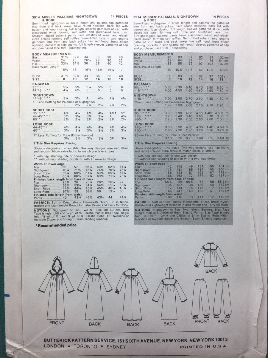 Nightgown Pattern Hooded Nightgown Square Yoke Butterick 3914 Sz 8 Uncut Ebay